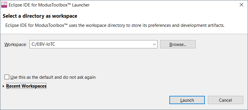 Launch Eclipse IDE for ModusToolbox